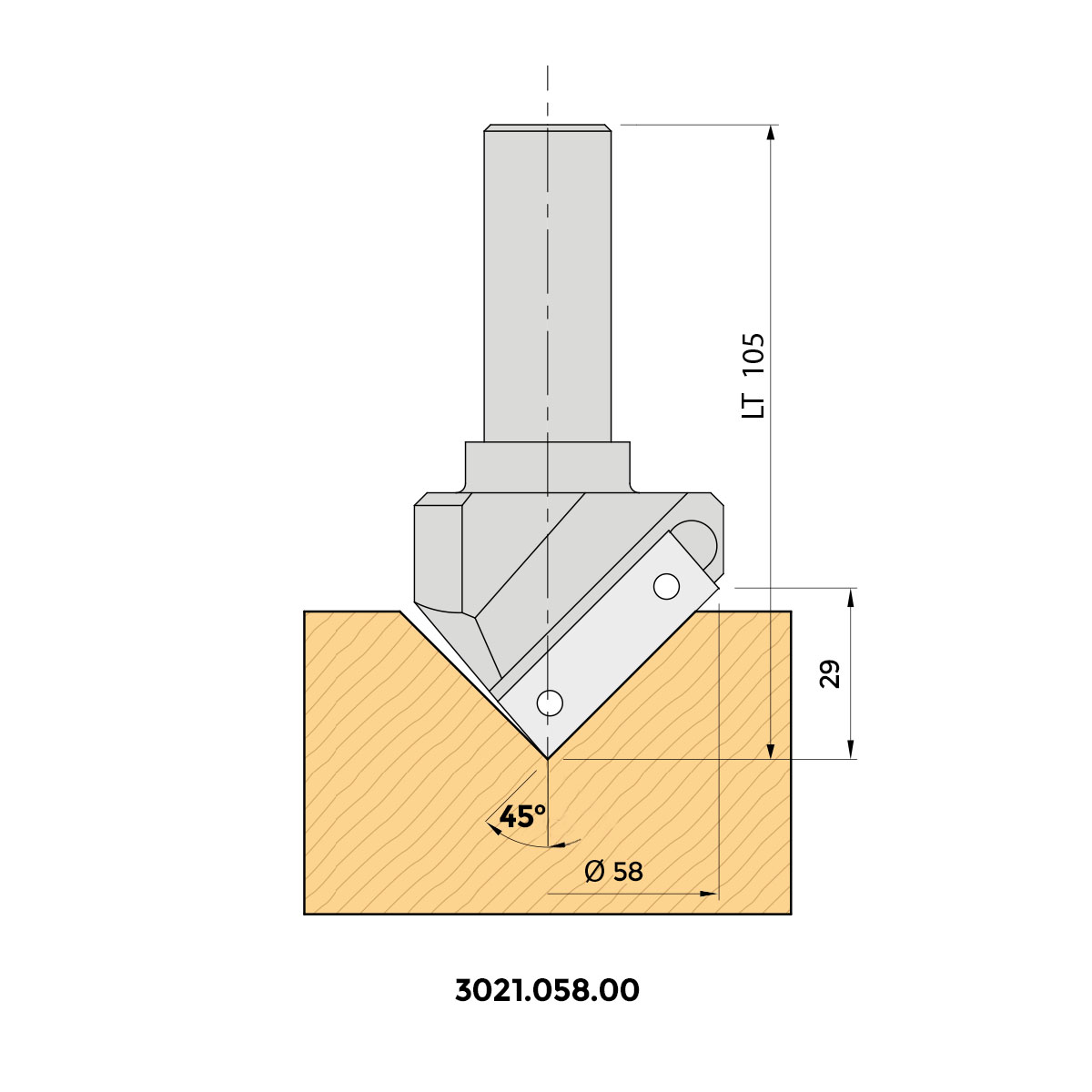 Questions about HM changeable blade V-groove shank cutter Z=1+1 / Ø58 / SL=29 / 45 degrees?